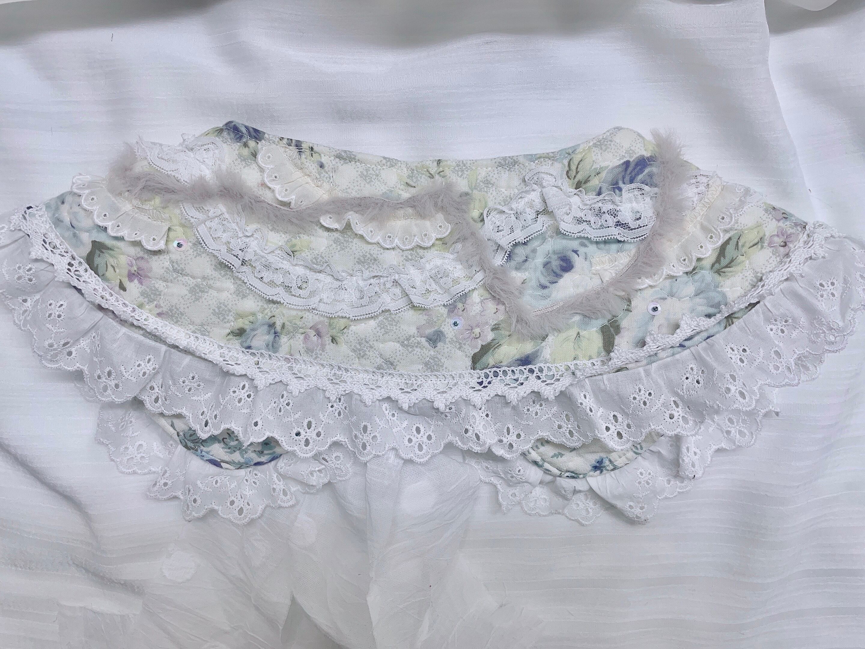 花柄のキルティングの生地にレースやビーズが散りばめられたガーリーなつけ襟。