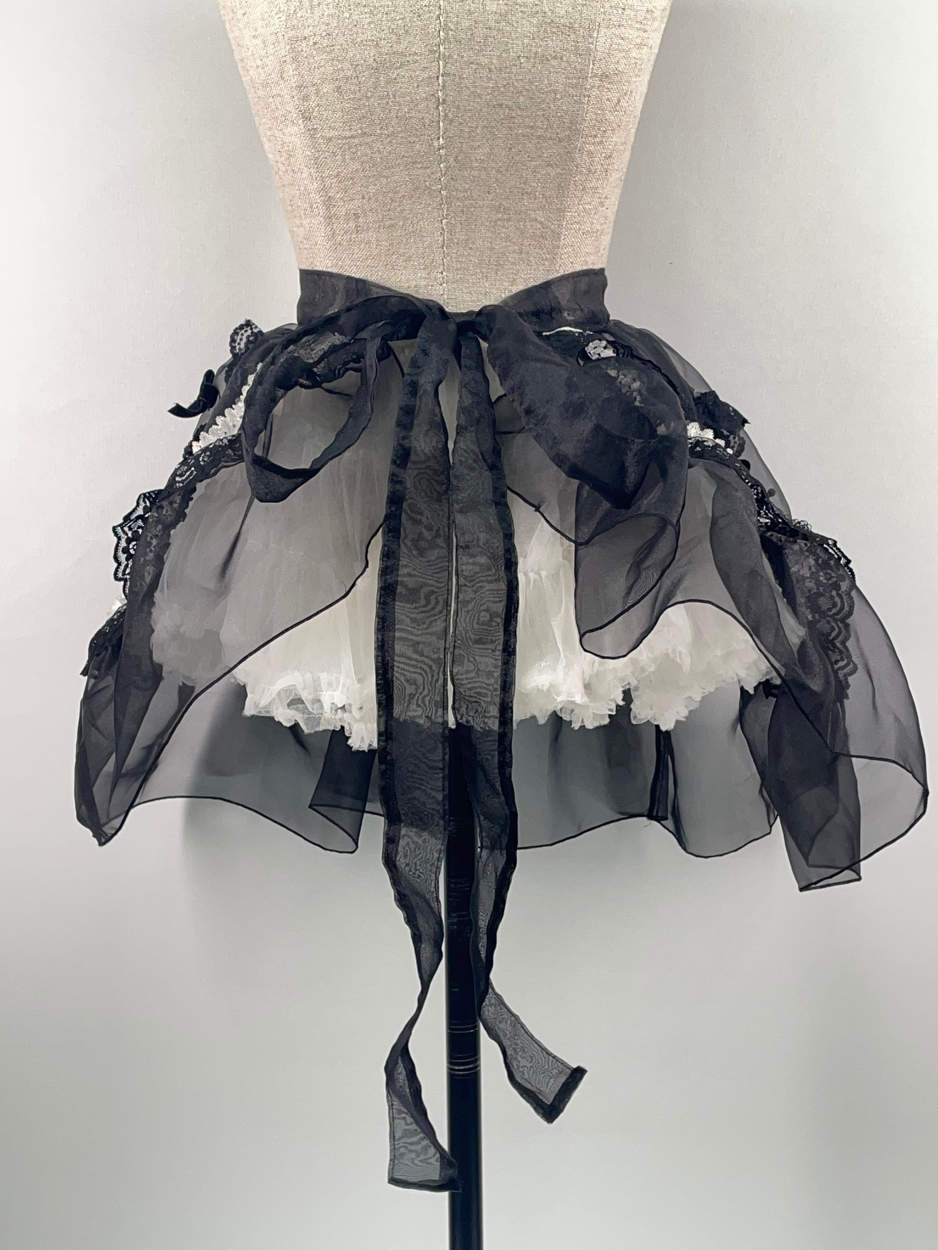 オーガンジーのエプロンにフリルとリボンがたっぷり乗ったラブリーなエプロン。